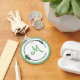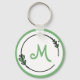 Pretty metal round key chain done in white, with a green border and a decorative black and green circle, with a green one letter monogram. Customise this to make a great gift for any occasion.