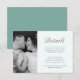 Vibrant cyan green with pretty script trendy wedding guest details photo card. Please view this collection for trendy coordinating invitations and mailing accessories.