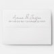 Simple grey and white envelope with return address and name in hand lettering script, coordinates with matching baby shower invitations and accessories that can be found in this collection.
