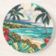Comic book style pop art Hawaiian Island. Vacation or travelling themed coaster.