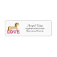 This horse themed address label design features a pretty palomino horse standing behind a pink and white polka-dot word "LOVE". Easily personalise with your name and address.