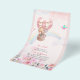 Pretty watercolor hot air balloon and jungle animals feature on this modern baby shower invitation for girls.
