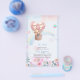Pretty watercolor hot air balloon and jungle animals feature on this modern baby shower invitation for girls.