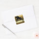 Beautiful hunter/jumper horse and rider jumping a big oxer fence on stickers with a pretty gold background.