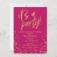 Your guests will know that this will be a fun party by just looking at this invitation! This design features fun typography, a pink background, and lots of gold confetti!