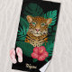 Pretty Jungle Leopard Floral Art | Black | Name Beach Towel