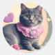This adorable sticker showcases a fluffy cat with a pink collar, regally posed next to a cluster of pink roses.