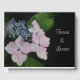 This guest book features a pretty pink lacecap hydrangea blossom against a dark background. This image makes a striking statement for weddings, anniversaries or engagements.