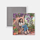Pretty Lady Drinking Coffee Relaxing Outside Magnet