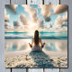 Pretty Lady Meditating on Beach Poster