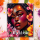 Cool ai art depicting a pretty African-American woman with yellow and pink flowers in her hair. Pretty hyper realistic digital art. Personalised notebook