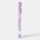 This pretty phone case features a girly design with a light purple or lavender background and white soft focus or bokeh sparkle lights. There is a band across the bottom with space for your name.