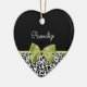 Personalise by adding the name of any girly girl to this pretty black and white leopard print heart-shaped ornament with a cute spring green ribbon tied into an elegant bow. This chic and stylish animal print design is a flat printed image, and does not contain actual ribbon.