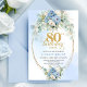 Pretty Light Blue Peonies Gold Frame 80th Birthday Invitation