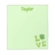 A great notepad with a light green background, there is a St. Patrick's day block letter at the bottom right hand corner. Personalise your name at the top.