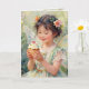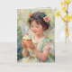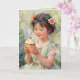A sweet birthday card for a little girl. The front has an illustration of a pretty little Asian fairy girl holding a cupcake with flowers in her hair, white wings and a vintage dress done in an impasto vintage style. The inside has a pretty poem for her.