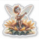 Pretty Little Fairy on a sunflower with raindrops playing a Ukulele,