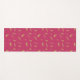 Elegant yoga mat pattern features golden floating feathers on magenta background