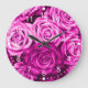 Pretty Magenta Pink Roses Flower Bouquet Large Clock