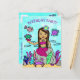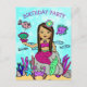 A cute affordable way to invite friends to a little girl's birthday party. A hand drawn folk art style whimsical African-American or Hispanic mermaid and her under the sea friends brightly coloured girl's birthday invite.