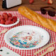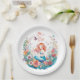 A pretty little mermaid in a bed of flowers watercolor illustration girl's baby shower paper plates. Colours used are pink, coral, orange, yellow and blue.