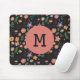 Pretty Modern Dark Floral Pattern Monogram Mouse Pad