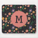 Pretty floral on dark background, monogrammed mouse pad.