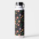 Pretty Modern Dark Floral Pattern Monogram Water Bottle