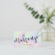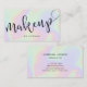 Modern makeup business card design featuring colourful faux holographic texture and elegant calligraphy font.