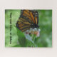 Pretty puzzle with close-up of monarch butterfly perched on delicate pink white flowers with big green leaves and a blurred green background. The monarch butterfly is so pretty and always a welcome sight with its orange and black wings and white dots. Personalise it with your text, or delete text box field. If choosing a different puzzle size you may need to click customise it and increase or decrease the image or text font size to fill entire puzzle edges. Fun puzzle for anyone who loves butterflies, flowers, and nature. Put together again and again, or frame it. Original Photography © TamiraZDesigns.