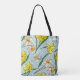 Pretty monogrammed Retro floral Blue pattern Tote Bag