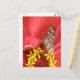 This beautiful postcard features a detailed photograph of a pretty brown and white speckled moth sitting on a red Zinnia flower. The photograph was taken using macro photography resulting in a detailed image of the beautiful insect and the bright colourful flower it is sitting on.