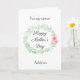 A green watercolor laurel and pink flowers pretty Happy Mother's Day niece card, which you will be able to easily personalise the front with her name. The inside message of this pretty niece Mothers Day card reads a heartfelt message, which you can also personalise if you wanted. The back has the same green watercolor laurel with pink flowers with a place for you to put the names of the child(ren) or whatever you would like. A sweet Mother's Day keepsake that is personalised and sure to be treasured.