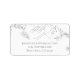 This mountain address label design features a simple line drawing of mountains, branches and flowers in gray and white.