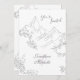 This mountain wedding invitation features a simple line drawing of mountains, branches and flowers. It is done in grey, white and a soft lilac ampersand. ^