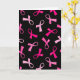 Breast cancer awareness ribbons in several shades of pink , create a cute pattern for this custom greeting card! Each ribbon is accented with a tiny heart. Show your love and support for women's health anytime and during breast cancer awareness month in October. You can change the size of the pattern to make it just right for you. It's shown on a black background color, but you can pick any background color you prefer. Looks nice on shades of black, light pink, white and more. Add your own special message on the inside of the card if desired.