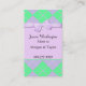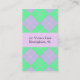 Pretty custom mummy calling card done with a lavender and green argyle pattern, with a solid lavender text field in the middle topped with a sweet lavender ribbon and bow. Personalise all the text, on the front and back, to suit your needs. Great for arranging play dates with other moms.