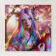 Pretty pink and purple woman with a mystical effect in an ethereal pink floral and butterflies background. Her hair looks like a pretty prism.