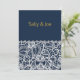 Pretty Navy Lace Diamond Wedding Invitation
