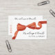 Pretty bow-themed business card with a coquette bow and ribbon in orange with black fonts. The girly design is perfect for a profession in the beauty industry or pageant industry. Add a url to the QR code so people can scan it with their smartphones and easily find your online presence.
