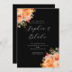 Pretty Orange Floral Elegant Black Wedding Invitation