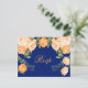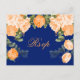 Rsvp Postcard. Matching Products Available - Featured in a pretty botanical orange floral design on a navy blue background ready for you to personalise - If you need further customisation, please click the "Click to Customise further" or "Customise "button and use our design tool to resize, rotate, change text or background colour, add text and more. ⭐This Product is 100% Customisable. Graphics and / or text can be added, deleted, moved, resized, changed around, rotated, etc... 99% of my designs in my store are done in layers. This makes it easy for you to resize and move the graphics and text around so that it will fit each product perfectly. ⭐ (Please be sure to resize or move graphics if needed before ordering) You can also "TRANSFER DESIGN" on other Zazzle products and adjust the design to fit most of Zazzle items. (button is down on the right side of the page) Some of the text graphics have ready to fill in the box(es) or you can Click on the "CUSTOMIZE" button to add, move, delete, resize, background colour or change any of the font or graphics. The design is made with high resolution vector and/or digital graphics for a professional print. ⭐NOTE: (THIS IS A PRINT. All zazzle product designs are "prints" unless otherwise stated under "About This Product" area) The design will be printed EXACTLY like you see it on the screen and on the product...so please make sure when you do your changes on the resizing of any of the graphics or text that it fits in the areas correctly and that your spelling and wording is how you like it to be in size, colour and font. If you have any questions about the "DESIGN ONLY" or need help with the design, please contact me at my direct email siggyscott@comcast.net or visit my store link: https://www.zazzle.com/store/designsbydonnasiggy (Copy and Paste) I'll be happy to help. ⭐ ALL OTHER QUESTIONS (ex: shipping, refund, the printing is incorrect, the product, etc...) please contact Zazzle or the Maker ⭐DIRECTLY⭐. Thank you for the support and stopping by my store - DesignsbyDonnaSiggy. © Donna Siegrist ⭐⭐⭐ ZAZZLE promises 100% satisfaction.
