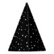 This paper party hat is black with white stars and a pretty brown owl with golden eyes sitting on a tree branch wearing a purple crystal necklace with a white crescent moon in the sky. Customise the Happy Birthday text with the templates.