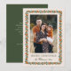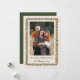 Send stylish, beautiful holiday greetings to your family and friends with this elegant Christmas photo card. It features a hand painted citrus frame, containing oranges, leaves, and pine sprigs. The back contains more text templates for further personalisation. The background colours, shown in off white and dark olive green, can be customised if desired.