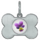 This awesome pet tag features a highly detailed photograph of a wild pansy flower, taken using macro photography. The flower is purple with a yellow centre.