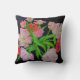 Original oil painting of colourful PARROT TULIPS on a chic black background by artist, Susan Payne-Trutna is now available on a pillow.