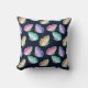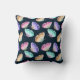 A pillow with a beautiful pattern. Watercolor butterflies, painted in pastel colours including pink, purple, blue, yellow and green. Dark blue watercolor background.