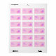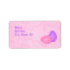A pink ornate Easter egg laying on it's side in front of an upright ornate lavender egg on a textured pink background on address labels.