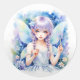 A pretty fairy with lavender braided hair and iridescent wings holds a butterfly wand while surrounded by flowers and bubbles.