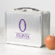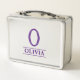Metal lunch box with pretty pastel purple name and initial, edit the text yourself when ordering.